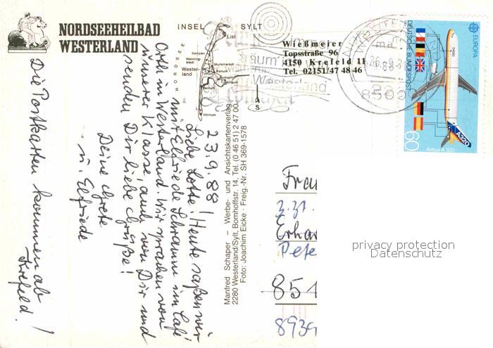 72839948 alte Postkarte Westerland Sylt Fliegeraufnahme mit Strand postalisch gelaufen Erhaltung siehe scans [LiesaD40] KatCode: 11110001054151