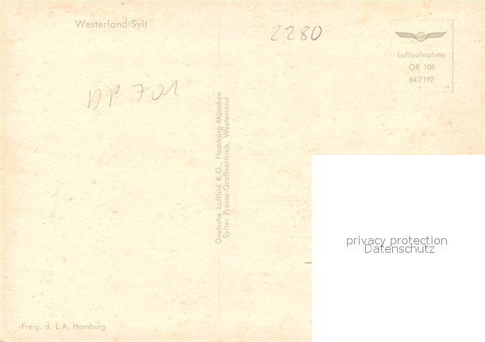 73167738 Westerland Sylt Fliegeraufnahme mit Strand postalisch nicht gelaufen Erhaltung siehe scans [LiesaD40] KatCode: 11110001054151