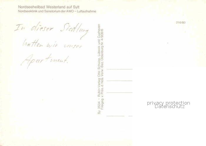72667107 Westerland Sylt Fliegeraufnahme Nordseeklinik Sanatorium der AWO postalisch nicht gelaufen Erhaltung siehe scans [LiesaD40] KatCode: 11110001054151