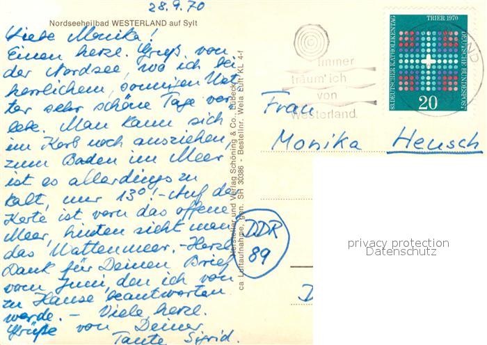 73167501 alte Postkarte Westerland Sylt Fliegeraufnahme Strand postalisch gelaufen Erhaltung siehe scans [KathaD81] KatCode: 11110001054151