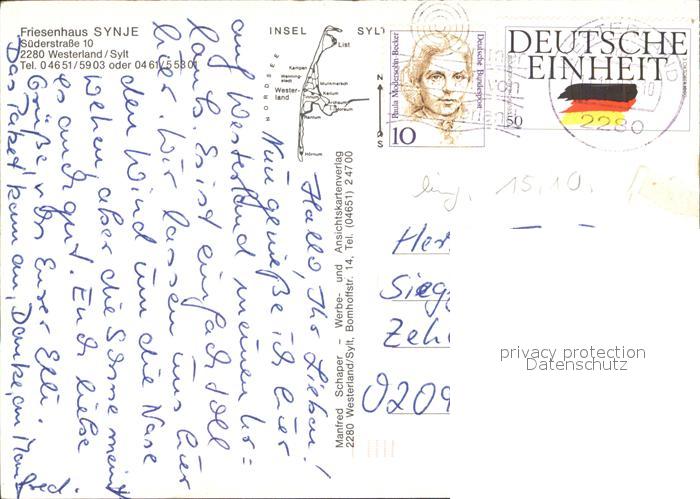 72523760 alte Postkarte Westerland Sylt Friesenhaus Synje postalisch gelaufen Erhaltung siehe scans KatCode: 11110001054151