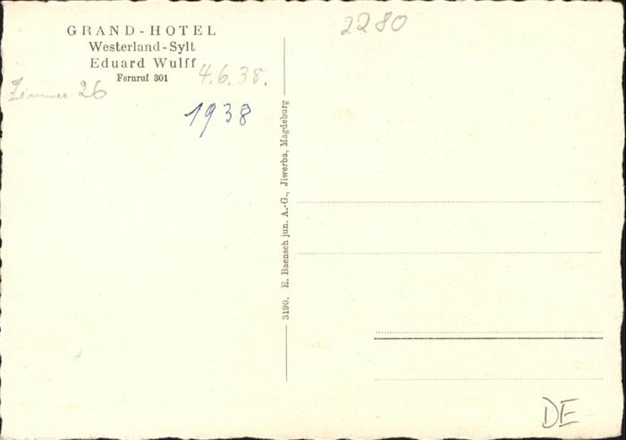 40955167 Westerland Sylt Grand Hotel NZ4 postalisch nicht gelaufen Alte Ansichtskarte Postkarte Katcode 11110001054151