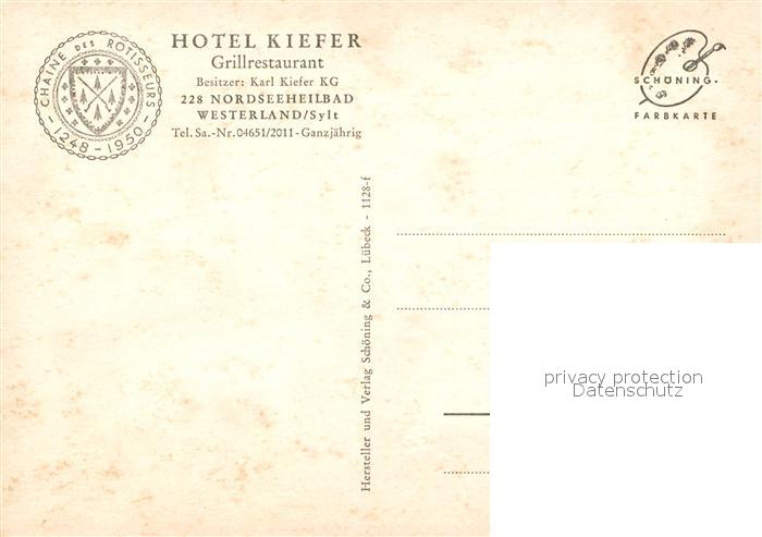 73569711 Westerland Sylt Hotel Kiefer postalisch nicht gelaufen Erhaltung siehe scans [PaolaD17] KatCode: 11110001054151
