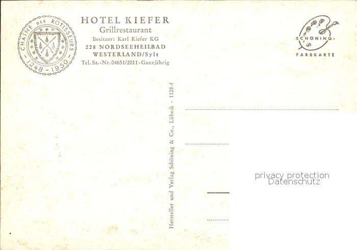 72293368 Westerland Sylt Hotel Kiefer postalisch nicht gelaufen Erhaltung siehe scans KatCode: 11110001054151