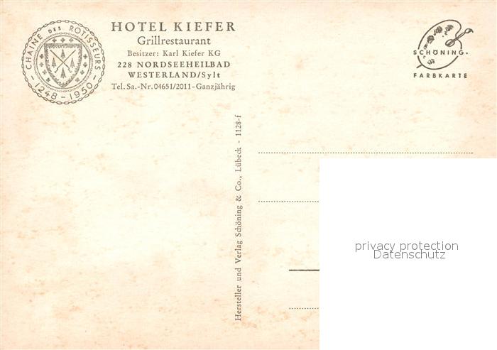 73570182 Westerland Sylt Hotel Kiefer postalisch nicht gelaufen Erhaltung siehe scans [PaolaD17] KatCode: 11110001054151
