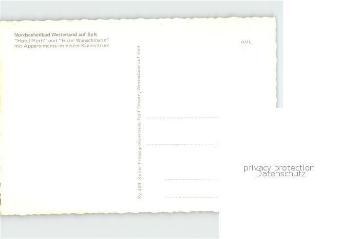 72135416 Westerland Sylt Hotels Roth und Wuenschmann postalisch nicht gelaufen Erhaltung siehe scans KatCode: 11110001054151