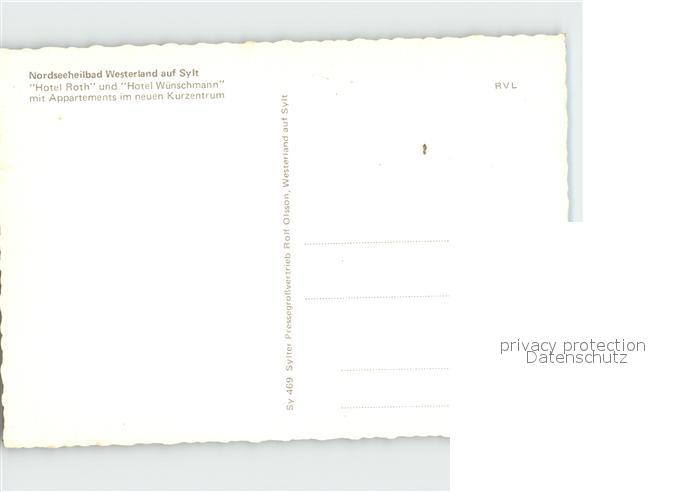 72135417 Westerland Sylt Hotels Roth und Wuenschmann postalisch nicht gelaufen Erhaltung siehe scans KatCode: 11110001054151