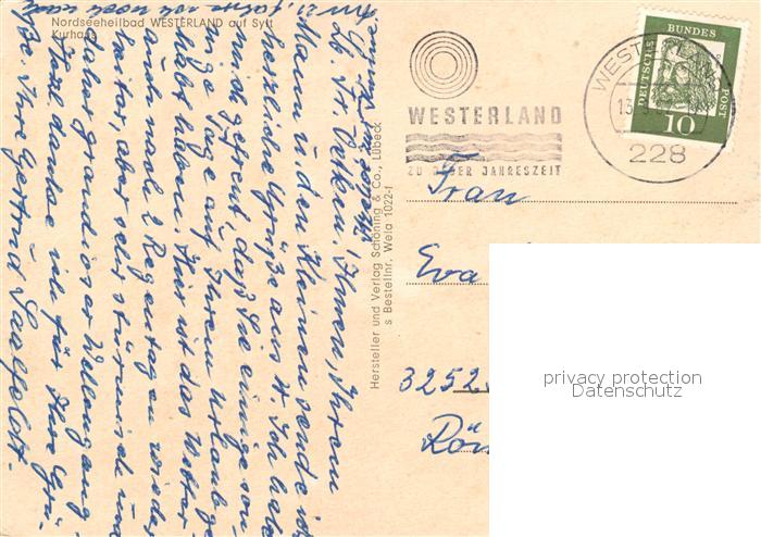 73105375 alte Postkarte Westerland Sylt Kurhaus postalisch gelaufen Erhaltung siehe scans [WerneD78] KatCode: 11110001054151