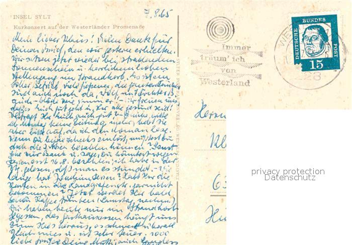72762879 alte Postkarte Westerland Sylt Kurkonzert postalisch gelaufen Erhaltung siehe scans [AndreD76] KatCode: 11110001054151