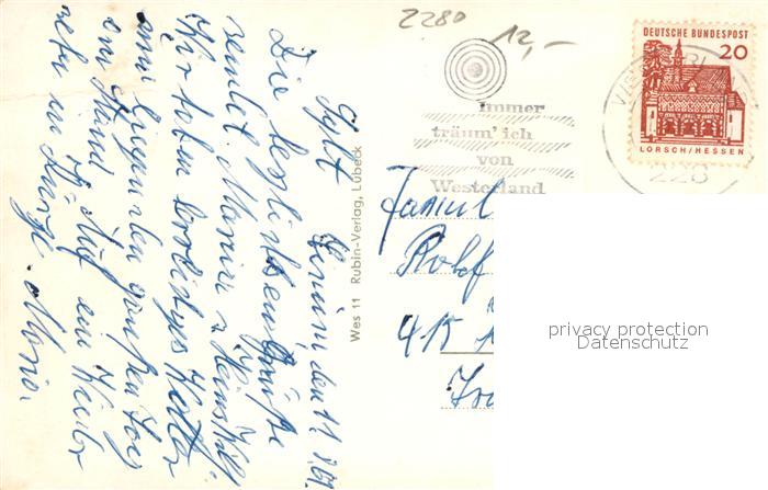 73158703 alte Postkarte Westerland Sylt Kurkonzert Friedrichstrasse Nordstrand Suedstrand Nordseeheilbad postalisch gelaufen Erhaltung siehe scans [FriedD77] KatCode: 11110001054151