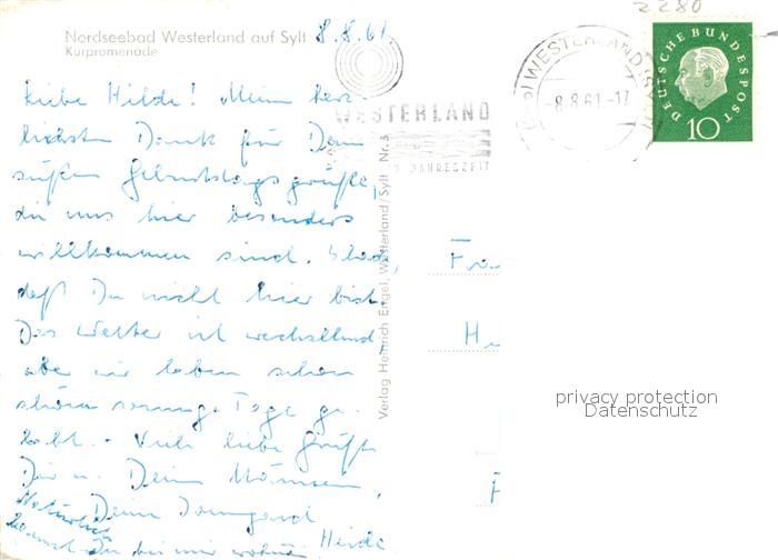 72928095 alte Postkarte Westerland Sylt Kurpromenade postalisch gelaufen Erhaltung siehe scans [AndreD76] KatCode: 11110001054151