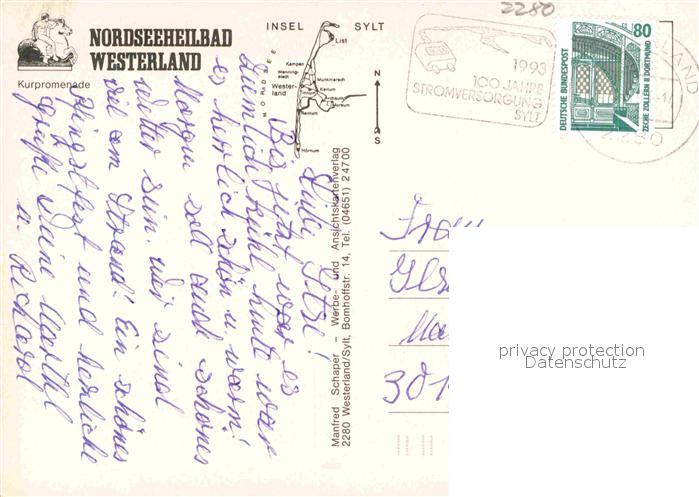 72909437 alte Postkarte Westerland Sylt Kurpromenade postalisch gelaufen Erhaltung siehe scans [LiesaD40] KatCode: 11110001054151