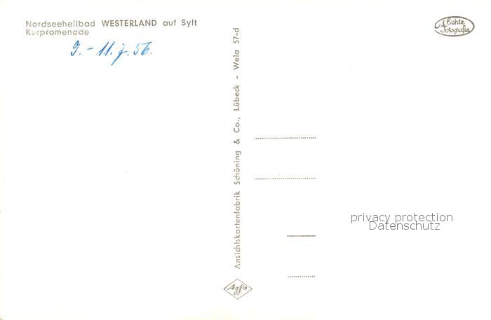 73817942 alte Postkarte Westerland Sylt Kurpromenade postalisch gelaufen Erhaltung siehe scans [FriedD77] KatCode: 11110001054151