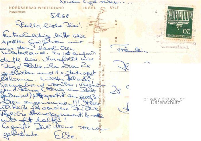 72795937 alte Postkarte Westerland Sylt Kurzentrum postalisch gelaufen Erhaltung siehe scans [KathaD81] KatCode: 11110001054151