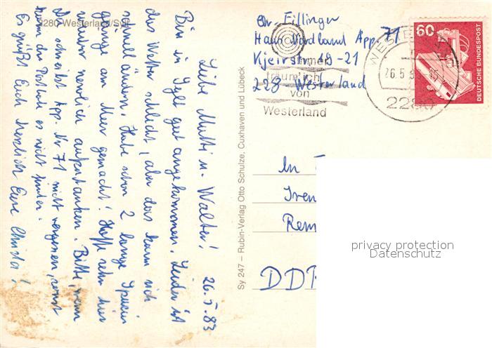 72959487 alte Postkarte Westerland Sylt Kurzentrum Duenen Friedrichstrasse Wellenbad Kurkonzert Lageplan postalisch gelaufen Erhaltung siehe scans [LiesaD40] KatCode: 11110001054151