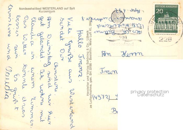 73668332 alte Postkarte Westerland Sylt Kurzentrum Strand Fliegeraufnahme postalisch gelaufen Erhaltung siehe scans [FriedD77] KatCode: 11110001054151