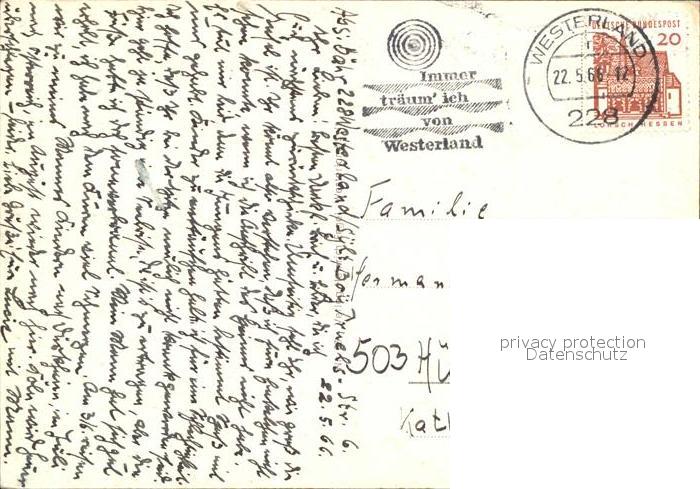 72147650 alte Postkarte Westerland Sylt Landkarte mit Sehenswuerdigkeiten postalisch gelaufen Erhaltung siehe scans KatCode: 11110001054151