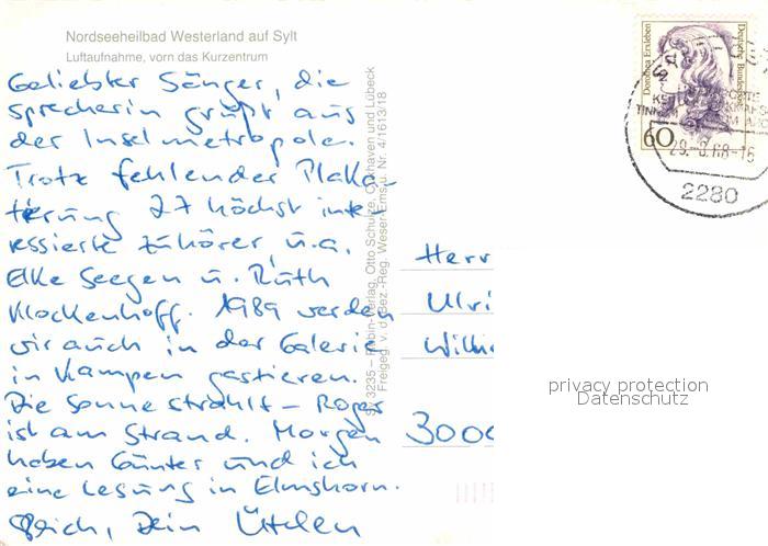72699059 alte Postkarte Westerland Sylt Luftaufnahme Kurzentrum Strand postalisch gelaufen Erhaltung siehe scans [KathaD79] KatCode: 11110001054151