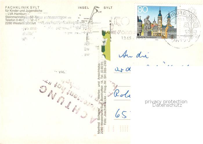 73636852 alte Postkarte Westerland Sylt mit Fachklinik der LVA Hamburg Fliegeraufnahme postalisch gelaufen Erhaltung siehe scans [FriedD77] KatCode: 11110001054151