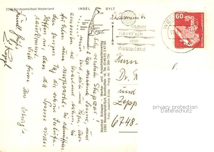73636870 alte Postkarte Westerland Sylt Nordseeheilbad Fliegeraufnahme postalisch gelaufen Erhaltung siehe scans [FriedD77] KatCode: 11110001054151