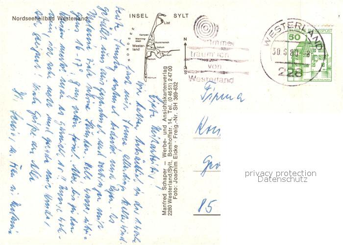 73578114 alte Postkarte Westerland Sylt Nordseeheilbad Fliegeraufnahme postalisch gelaufen Erhaltung siehe scans [FriedD77] KatCode: 11110001054151