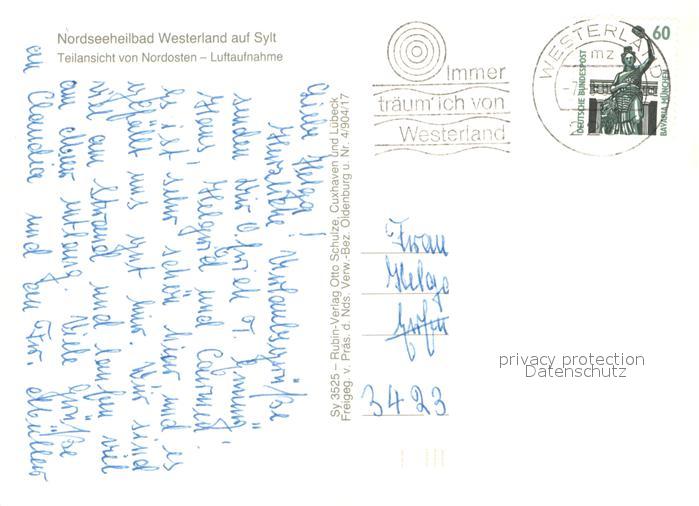 73687499 alte Postkarte Westerland Sylt Nordseeheilbad Fliegeraufnahme postalisch gelaufen Erhaltung siehe scans [FriedD77] KatCode: 11110001054151