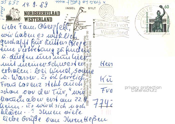 72677571 alte Postkarte Westerland Sylt Nordseeheilbad Fliegeraufnahme postalisch gelaufen Erhaltung siehe scans [FriedD77] KatCode: 11110001054151