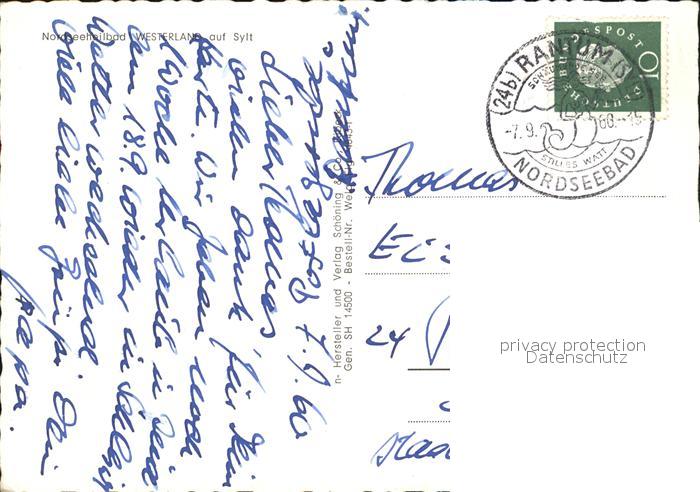 72592640 alte Postkarte Westerland Sylt Nordseeheilbad Fliegeraufnahme postalisch gelaufen Erhaltung siehe scans [FriedD77] KatCode: 11110001054151