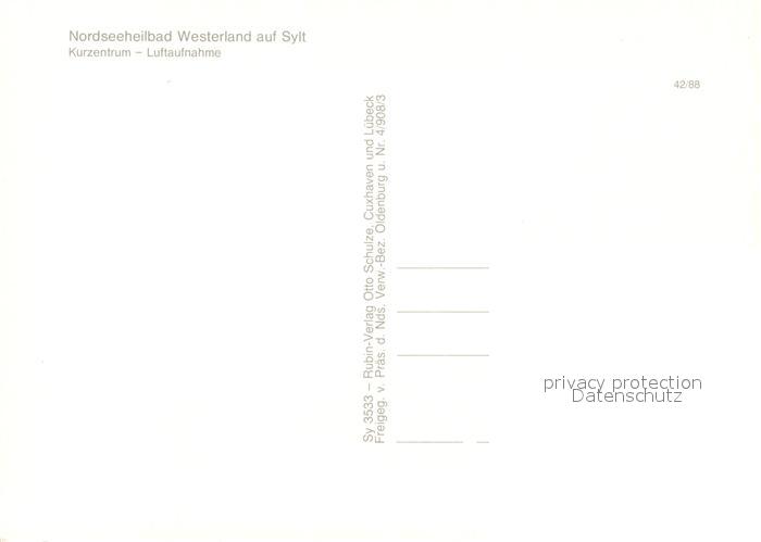 73070604 Westerland Sylt Nordseeheilbad Kurzentrum Fliegeraufnahme postalisch nicht gelaufen Erhaltung siehe scans [FriedD77] KatCode: 11110001054151
