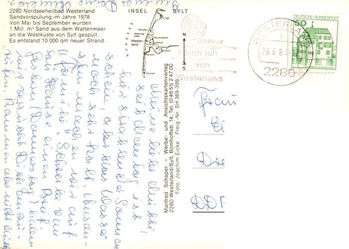73946910 alte Postkarte Westerland Sylt Nordseeheilbad postalisch gelaufen Fliegeraufnahme Erhaltung siehe scans [FriedD77] KatCode: 11110001054151