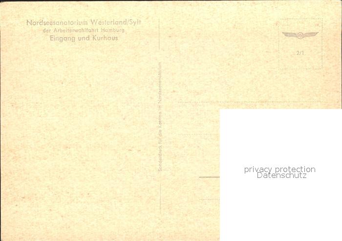 72273041 Westerland Sylt Nordseesanatorium Eingang Kurhaus postalisch nicht gelaufen Erhaltung siehe scans KatCode: 11110001054151