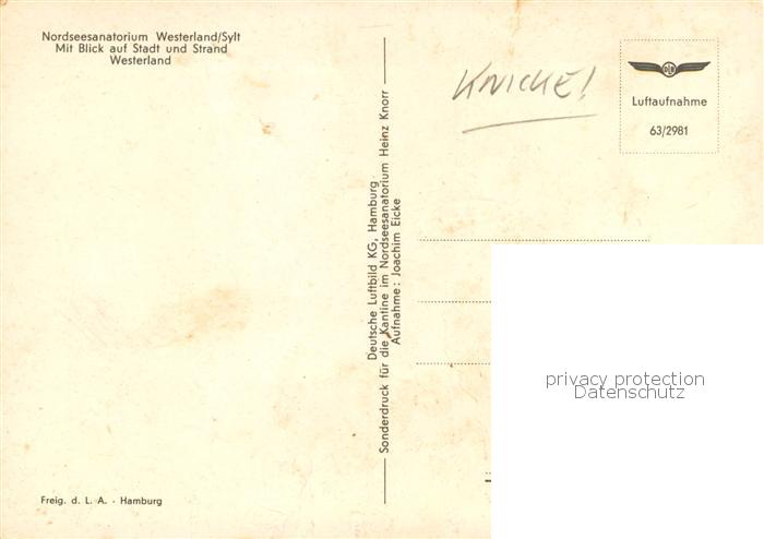 73761186 Westerland Sylt Nordseesanatorium mit Stadt und Strandblick Fliegeraufnahme postalisch nicht gelaufen Erhaltung siehe scans [WerneD78] KatCode: 11110001054151