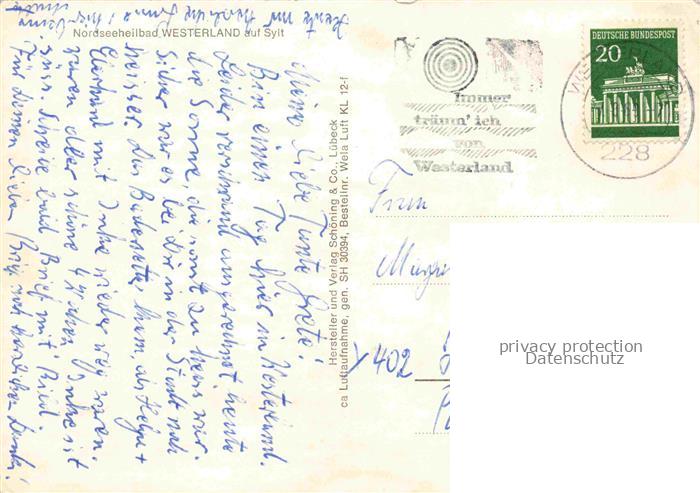 74040576 alte Postkarte WESTERLAND Sylt Panorama Nordseeheilbad postalisch gelaufen Fliegeraufnahme Erhaltung siehe scans [FriedD77] KatCode: 11110001054151