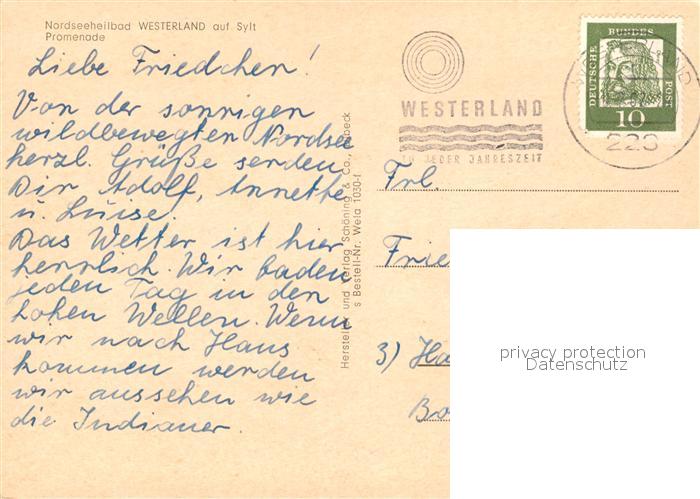 73159452 alte Postkarte Westerland Sylt Promenade Strand Gaststaette Nordseeheilbad postalisch gelaufen Erhaltung siehe scans [FriedD77] KatCode: 11110001054151