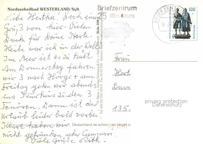 72693028 alte Postkarte Westerland Sylt Rathaus Friedrichstrasse Wellenbad Duenen Strand Promenade postalisch gelaufen Erhaltung siehe scans [FriedD77] KatCode: 11110001054151