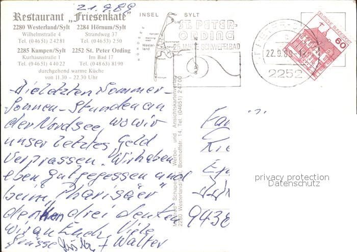 72506074 Westerland Sylt Restaurant Friedsenkate Hoernum Kampen Sankt Peter Ording postalisch nicht gelaufen Erhaltung siehe scans Andr Katcode 11110001054151