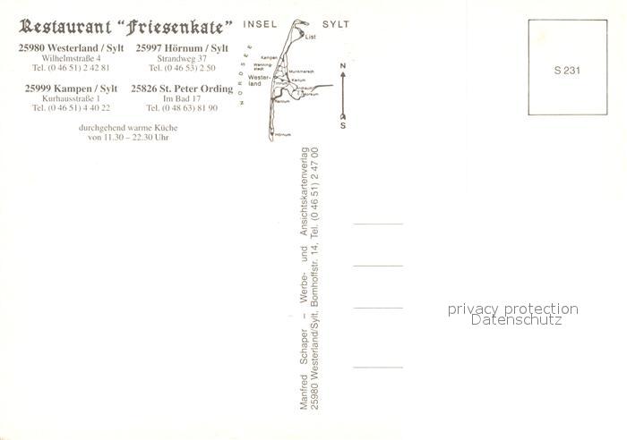 73160694 Westerland Sylt Restaurant Friesenkate postalisch nicht gelaufen Erhaltung siehe scans [FriedD77] KatCode: 11110001054151