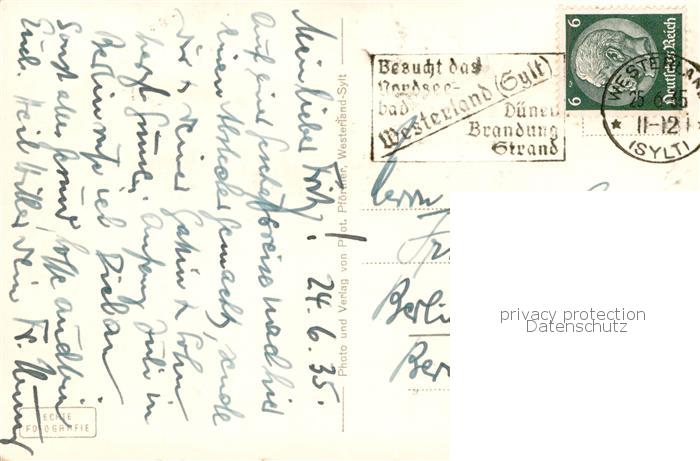 73818075 alte Postkarte Westerland Sylt Springflut postalisch gelaufen Erhaltung siehe scans [FriedD77] KatCode: 11110001054151