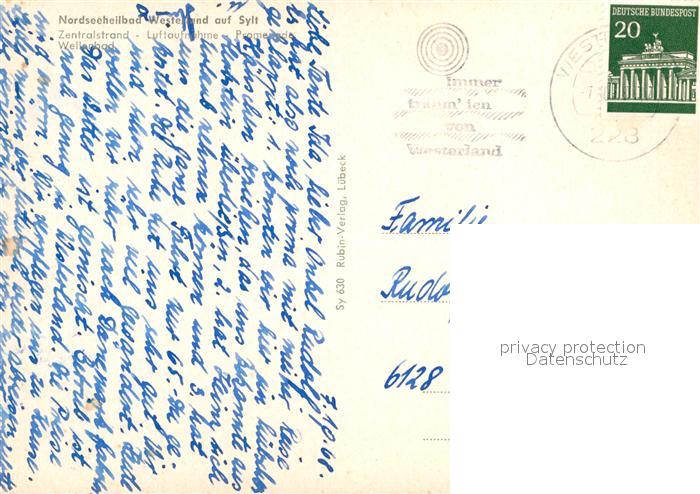 73001046 alte Postkarte Westerland Sylt Strand Ellenbogen Fliegeraufnahme Kurhaus postalisch gelaufen Erhaltung siehe scans [AndreD76] KatCode: 11110001054151