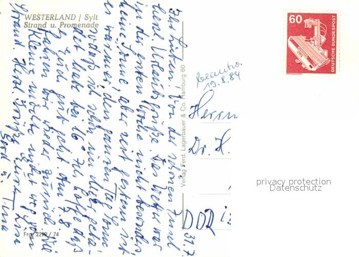 72827619 Westerland Sylt Strand Promenade postalisch nicht gelaufen Erhaltung siehe scans [NatalD47] KatCode: 11110001054151