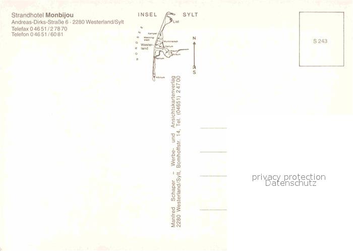 72901870 Westerland Sylt Strandhotel Monbiju Speiseraum Doppelzimmer Brandung postalisch nicht gelaufen Erhaltung siehe scans [AndreD76] KatCode: 11110001054151
