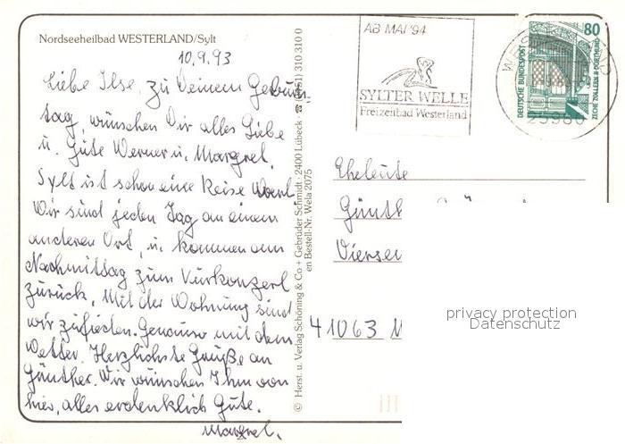 73158805 alte Postkarte Westerland Sylt Strandpromenade Konzertpavillon Brunnen Fussgaengerzone Hotel Nordseeheilbad postalisch gelaufen Erhaltung siehe scans [FriedD77] KatCode: 11110001054151