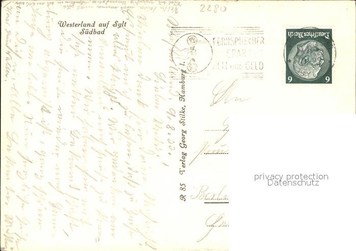71570628 alte Postkarte Westerland Sylt Suedbad postalisch gelaufen Erhaltung siehe scans KatCode: 11110001054151