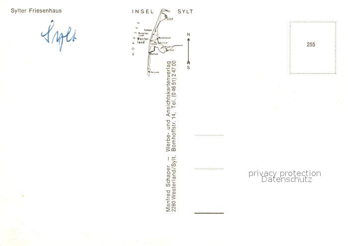 72993631 Westerland Sylt Sylter Friesenhaus postalisch nicht gelaufen Erhaltung siehe scans [FriedD77] KatCode: 11110001054151