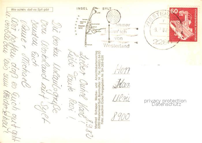 73072274 alte Postkarte Westerland Sylt Teilansichten Nordseeheilbad Duenen Sonnenuntergang am Meer Konzertpavillon postalisch gelaufen Erhaltung siehe scans [FriedD77] KatCode: 11110001054151