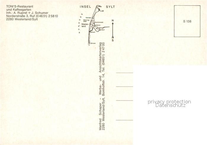 73641869 Westerland Sylt Tonis Restaurant Gastraeume postalisch nicht gelaufen Erhaltung siehe scans [WerneD78] KatCode: 11110001054151
