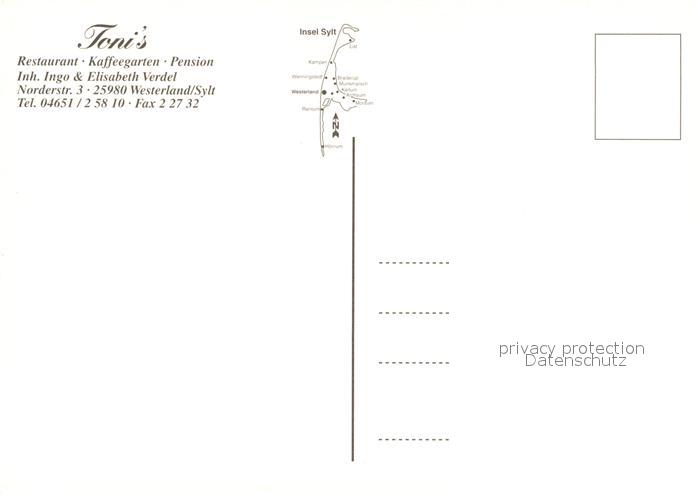 73543126 Westerland Sylt Toni’s Restaurant Kaffeegarten Pension postalisch nicht gelaufen Erhaltung siehe scans [FriedD77] KatCode: 11110001054151