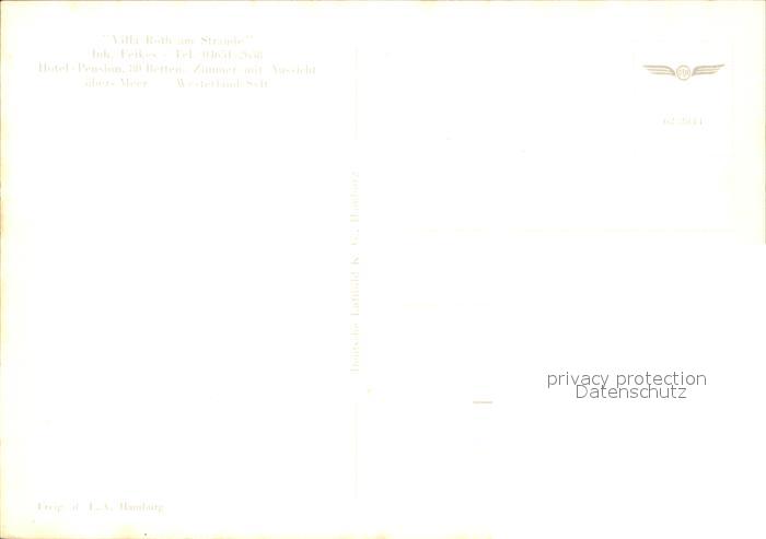 72155971 Westerland Sylt Villa Roth am Strand Fliegeraufnahme postalisch nicht gelaufen Erhaltung siehe scans KatCode: 11110001054151