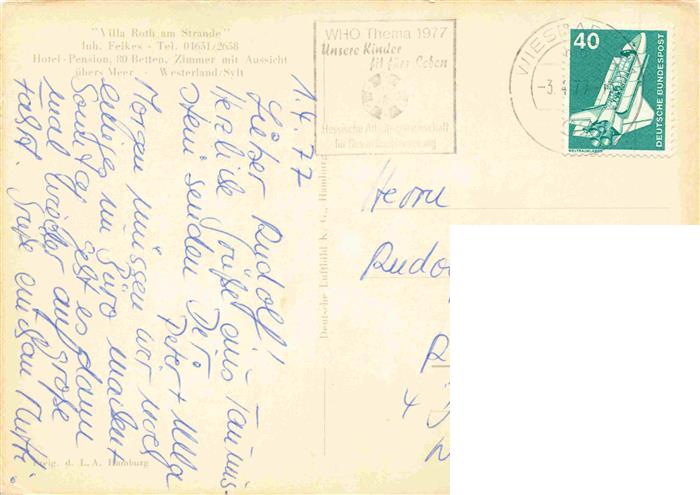 74014829 alte Postkarte WESTERLAND Sylt Villa Roth am Strande Fliegeraufnahme postalisch gelaufen Erhaltung siehe scans [WerneD78] KatCode: 11110001054151