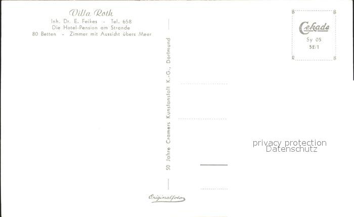 72226211 Westerland Sylt Villa Roth postalisch nicht gelaufen Erhaltung siehe scans KatCode: 11110001054151